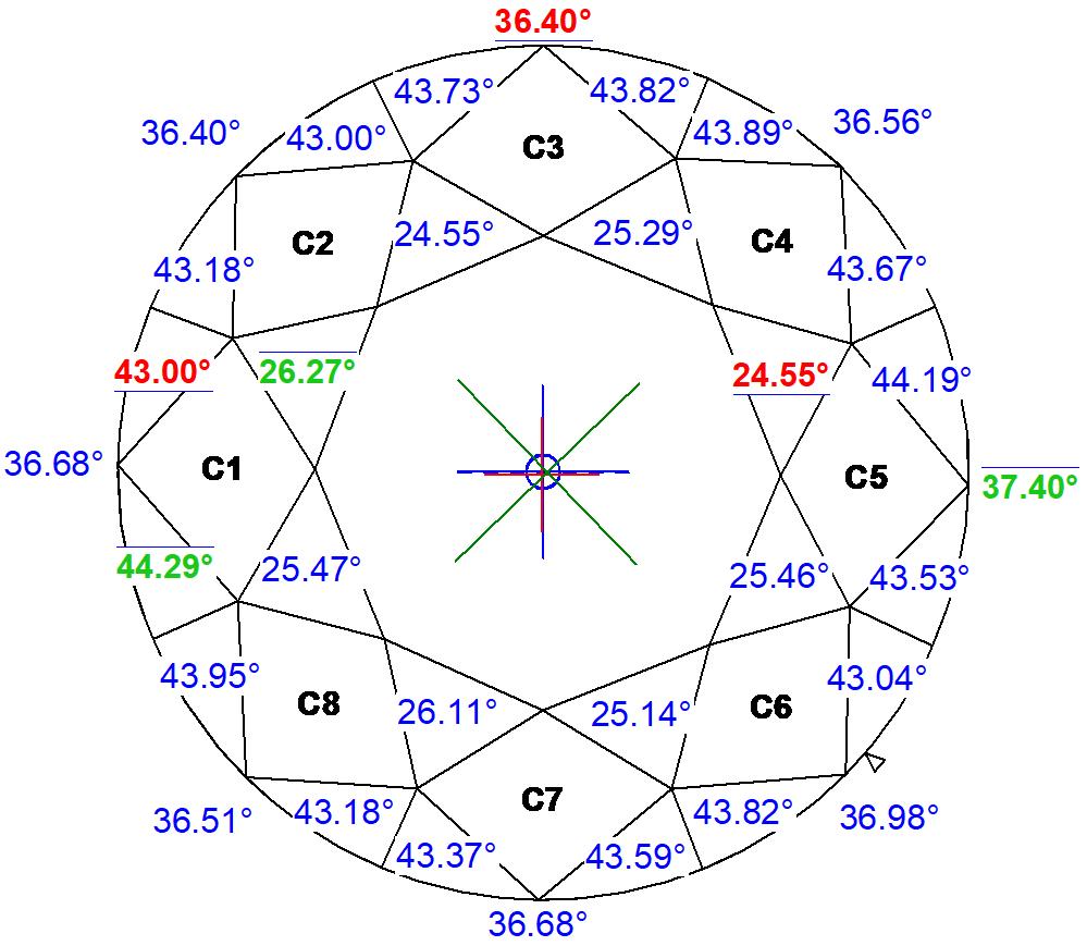 | Table-Culet offset by table axis | 0.68 ± 0.13, % | 0.043 ± 0.009, mm | EX | |||||||